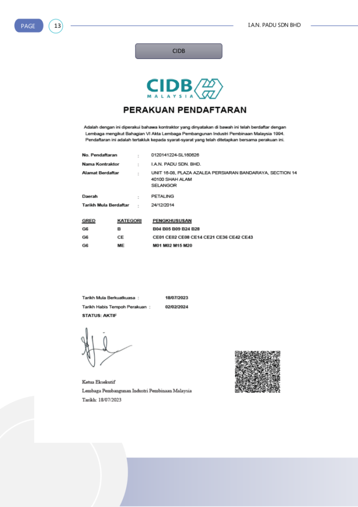 I.A.N. PADU SDN BHD started its operation and business in 2013 and is active in the construction industry and construction services. I.A.N.’s professional directions is to provide cost-effective, state-of-the-art, environmentally friendly technology solutions for integrated commercial buildings, housing, industry and healthcare.